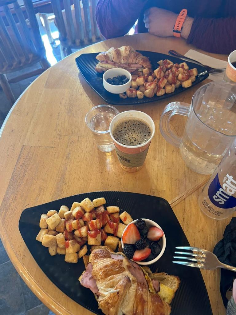 We continue our climb up until the Laguna mountains- named for the two natural lakes that reside on the summit, which is a rarity in this part of the country. We get to a little French bistro at the summit of the climb and order two croissant breakfast sandwiches from the ponytailed, heavily accented, Frenchman who owns the establishment.