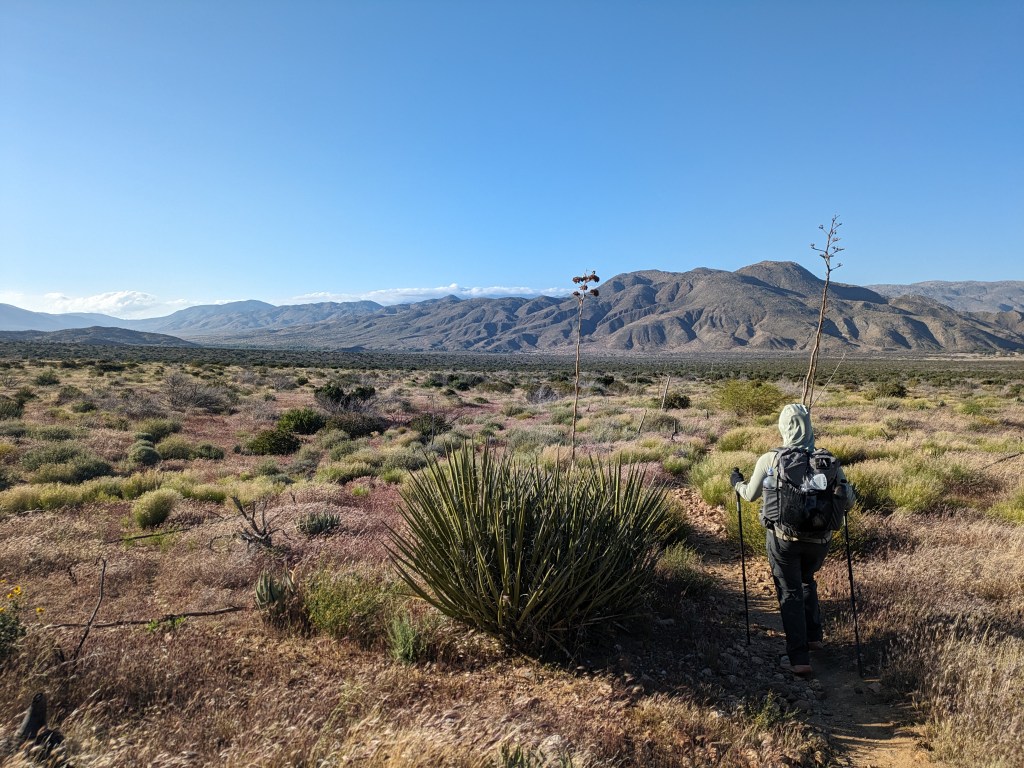 We continued on a long series of ridge walks, slowly descending from the Laguna mountains. The wind is a constant, but it sucks away some of the heat and requires us to carry less water so I am thankful for it.