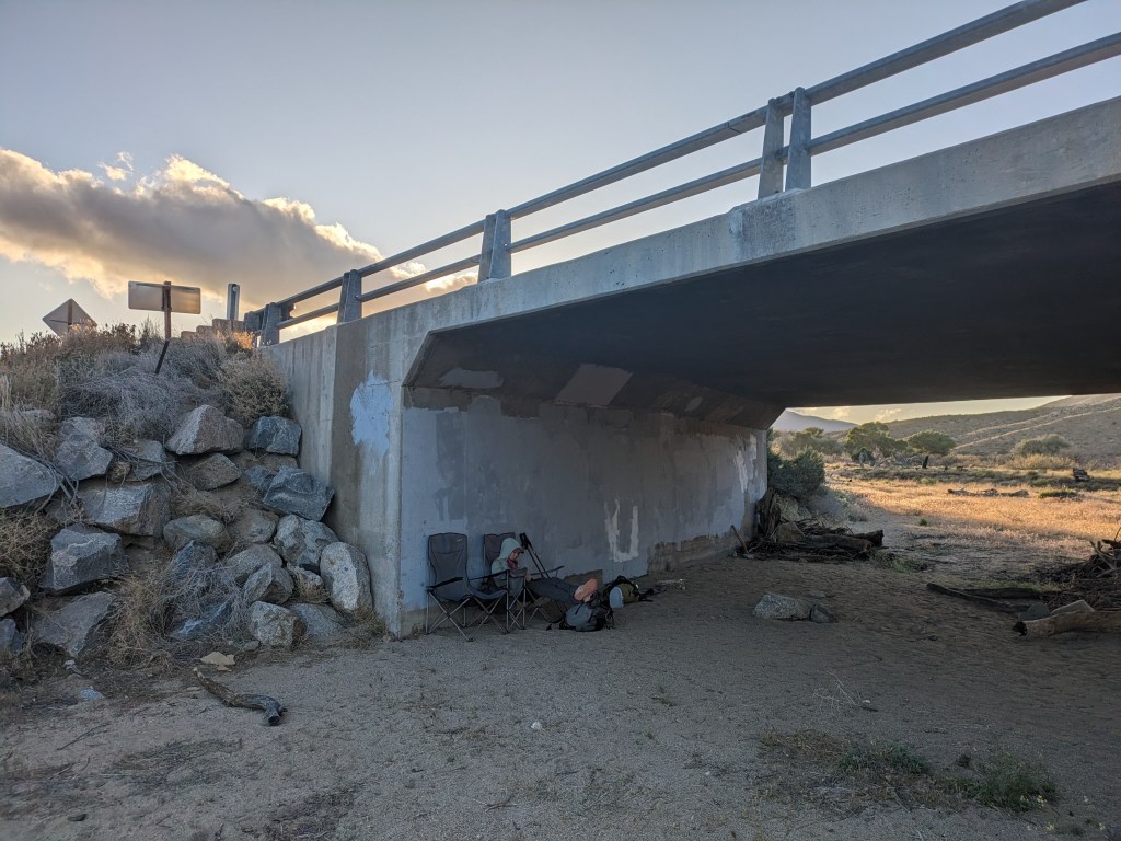 The wind is punishing down in the valley. We notice that a few miles ahead the trail crosses underneath a highway, and make our plan to sleep underneath it like two hungry little trolls. Tomorrow we will go to town to resupply.