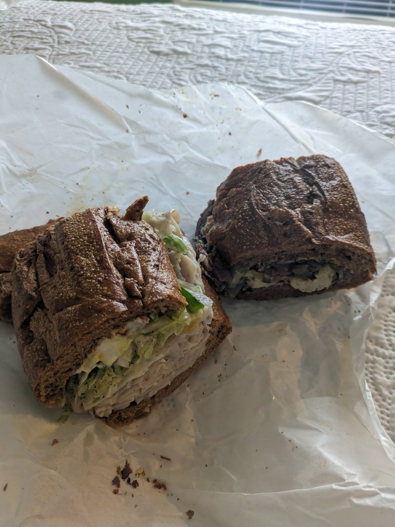 While waiting for our clothes to dry, amber put on her only remaining clothes- rain jacket and rain pants and bought us sandwiches at the local deli. I am excited to announce an update to the food podium. Please see below.