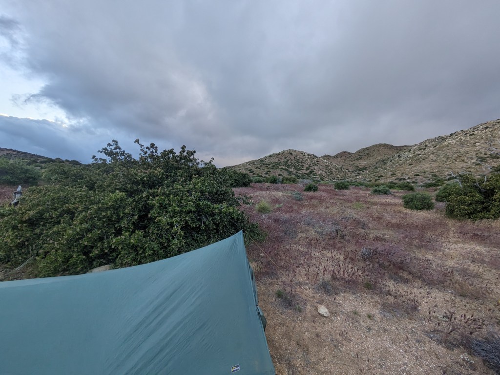 By 6pm we are chased into an early camp by storm clouds building overhead. We find a less windy spot in an otherwise very exposed area and begrudgingly call it a day to avoid getting stuck in a bad position.