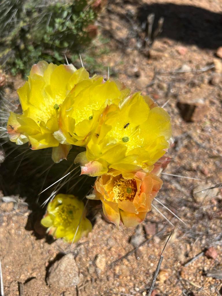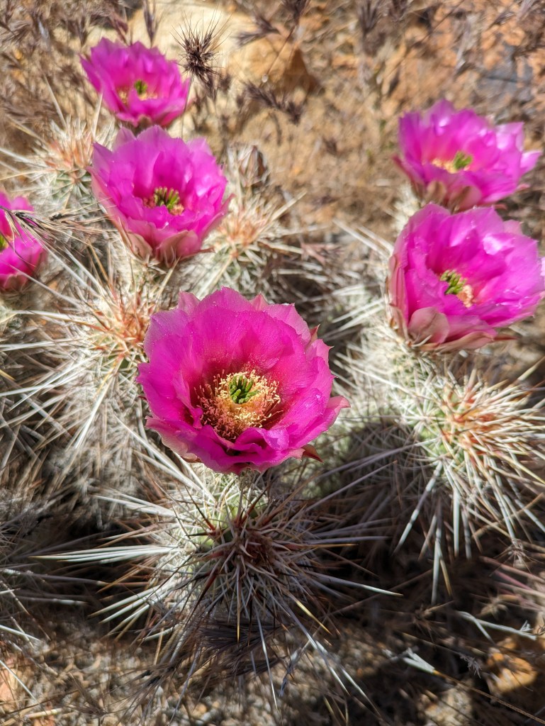 Luckily the desert is in bloom, and we marvel at the colors of the cactus flowers.