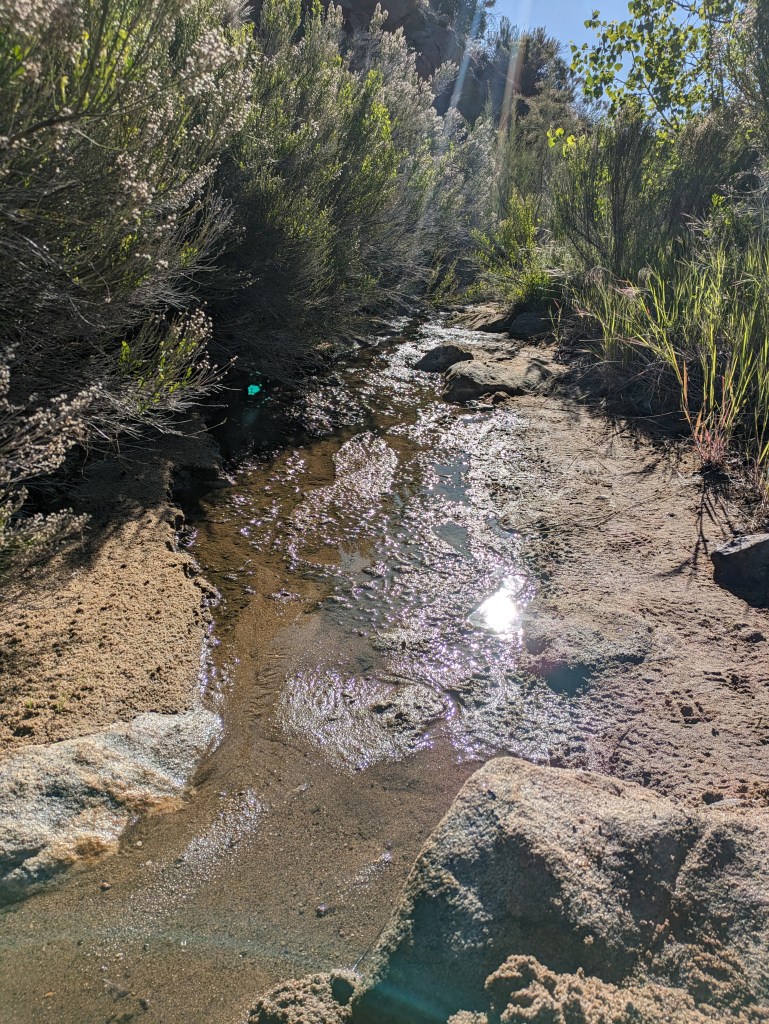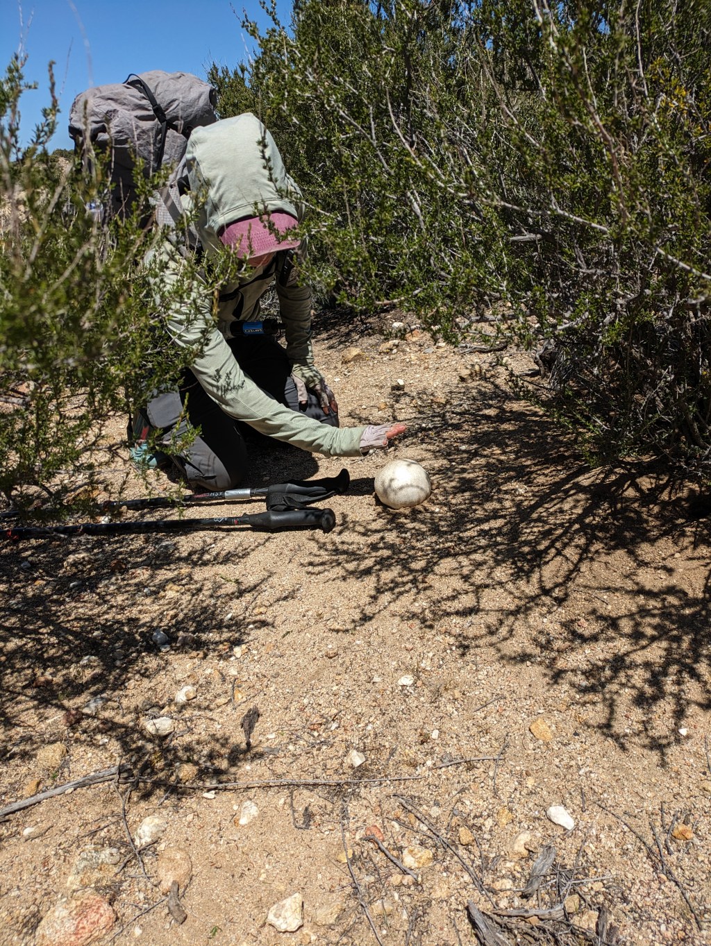 We have to dig a hole, which fills with water, and then scoop water out of the hole. We had 15 miles to go before resupply so we both took 3.5 liters each from this wet patch of dirt.