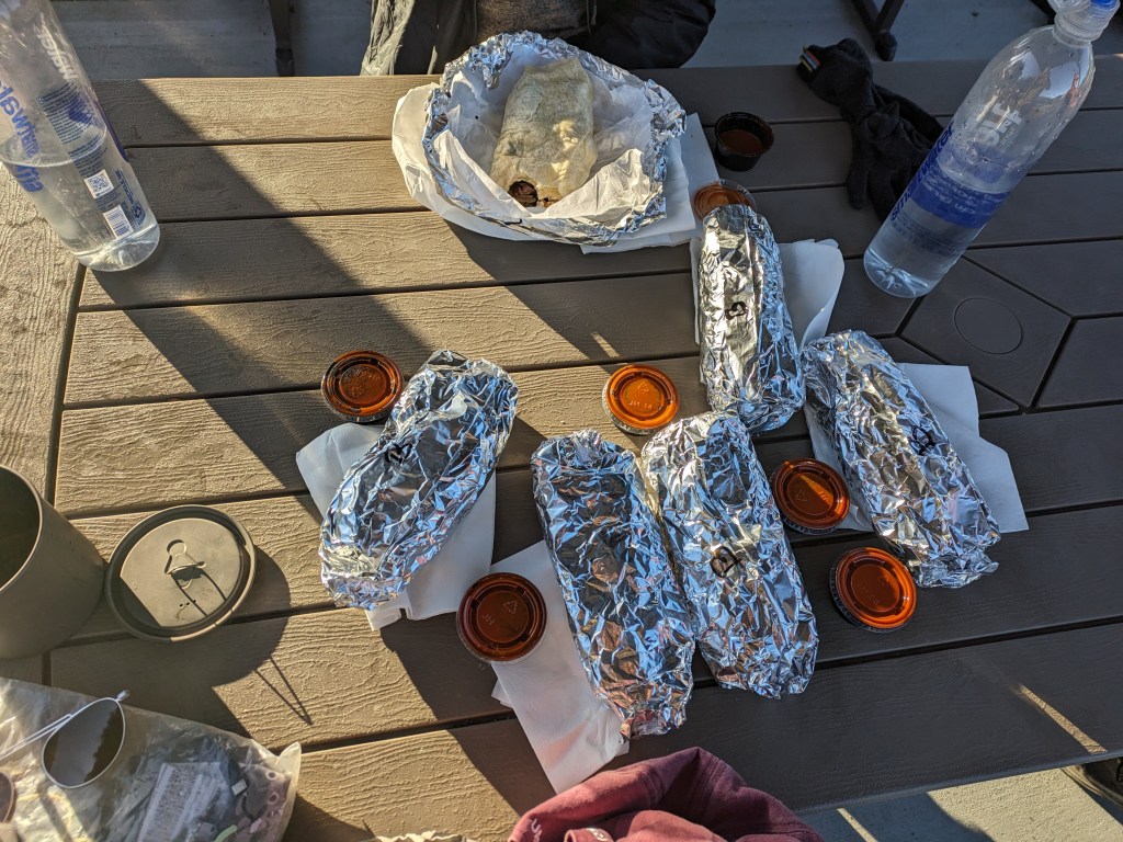Burritos were delivered as promised. I eat 1 and pack out 3. This is a burrito based resupply, a burresupply.