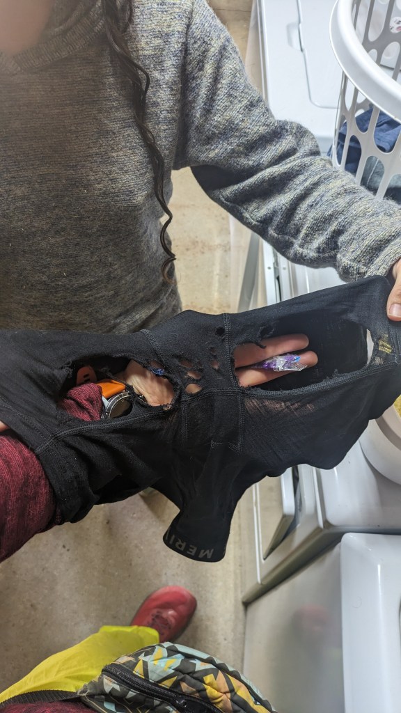 My underwear are rapidly falling apart, and I am hundreds of miles away from a town with a clothing store. Honestly, the torn open parts have improved my previous problems with chafing.