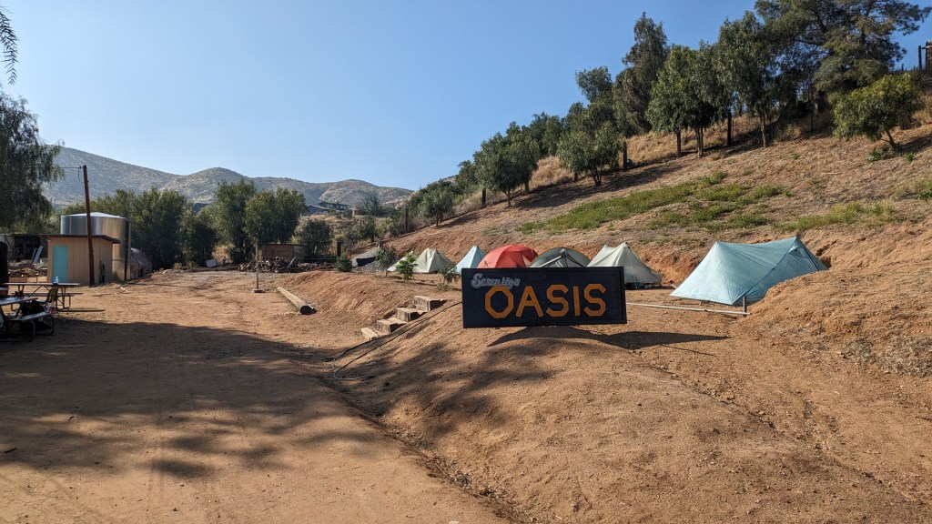 There isn’t much going on in Agua Dulce, no hotels, no grocery stores, only 2 restaurants and a hardware store. A local farmer has opened up his property to hikers for a small fee, and has built showers and laundry facilities in the back of his property.