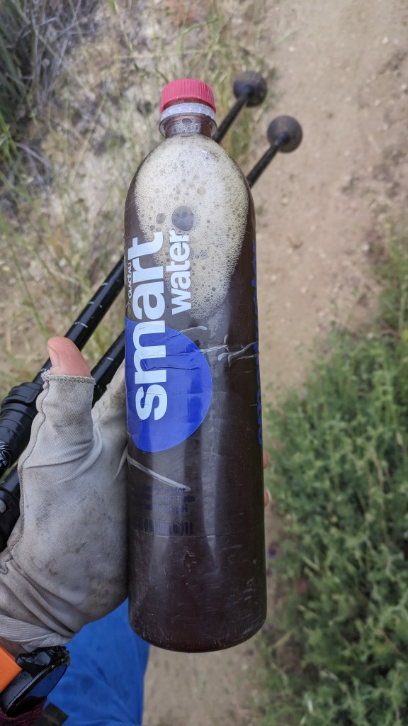 In the evening we get views of our route through the western arm of the Mojave desert. We can see massive solar arrays on the desert floor below us. Our final Water source for the day is a massive concrete cistern full of surprisingly clear and cold water.