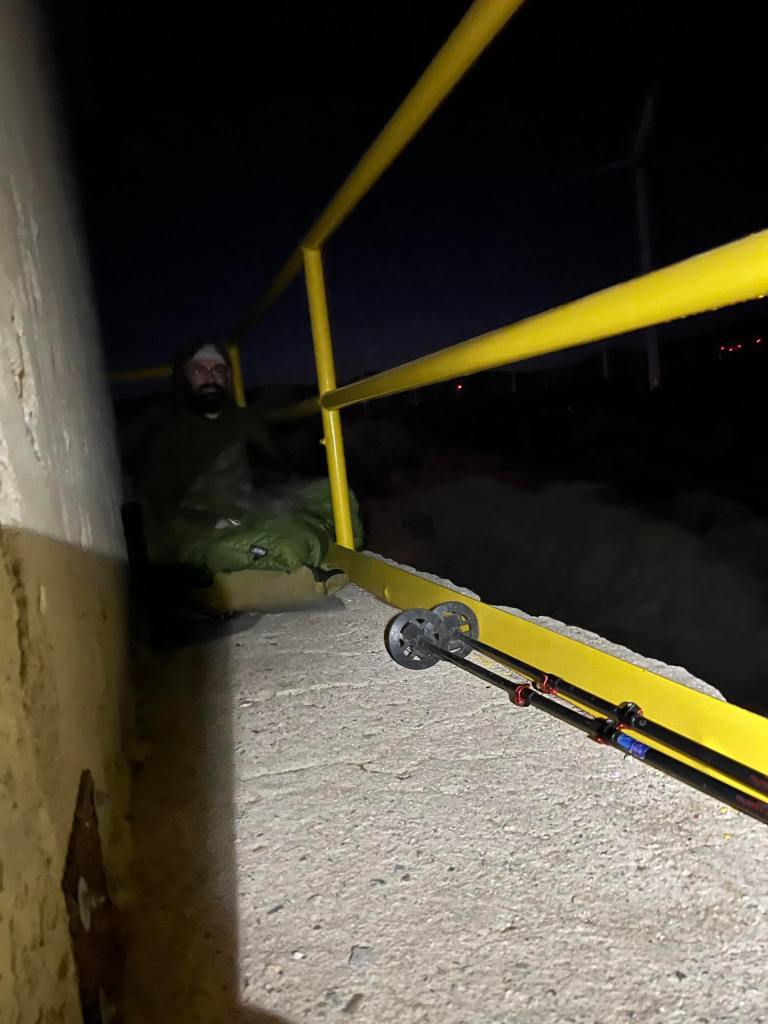 Eventually we come across some piece of concrete infrastructure of the wind farm and hope that if we wedge ourselves next to it, we can avoid wind from at least one direction. I sleep wedged next to the structure, on a metal walkway above a 30 foot drop into a creek bed. It is a very stupid campsite, but after 30 miles of hiking we are wiped out and not in the mood to continue searching.