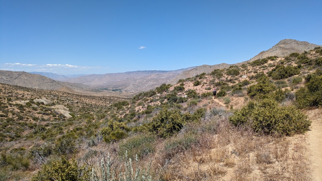 We are in the forest, where we have been previously on this trip,but this time it feels different. It feels more like a living ecosystem than a small outpost of pines on the top of a ridge. The Sierra officially start at Tehachapi pass and go on for 400 miles until Mt Lassen, a volcano in northern California. It is the longest single mountain range in the contiguous USA. The Appalachians out east are subdivided into different ranges with different geological histories, the Rockies are similarly separated. The Sierra, with their distinctive granitic peaks, are a singular geological range, and they will be our companion for the next 700 miles of trail.