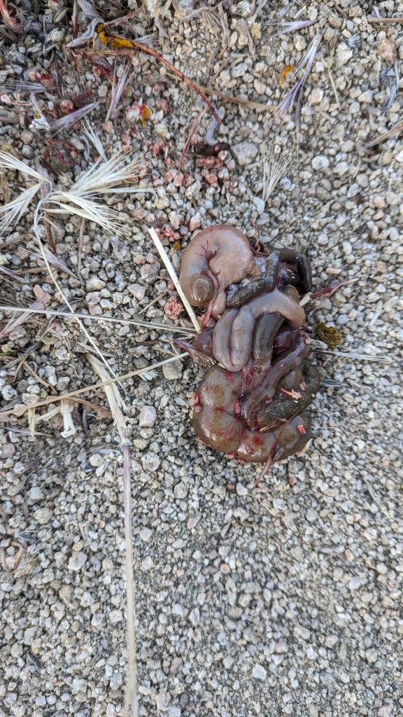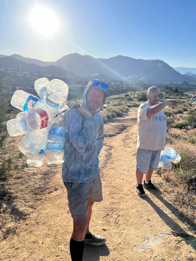 Finally we descend to Walker Pass, where a highway bisects the trail- where we planned to meet Amber’s dad tomorrow afternoon. As we walk to the road we see one of the few hikers we have seen multiple times. Due to our quick pace, we often pass folks to never see them again. This hiker, “Road Dog” is strong and experienced and we have seen him multiple times on trail. Next to him is Sergio, a man who lives in a nearby town. Twice a day Sergio drives up to the pass to fill a water cache for hikers.