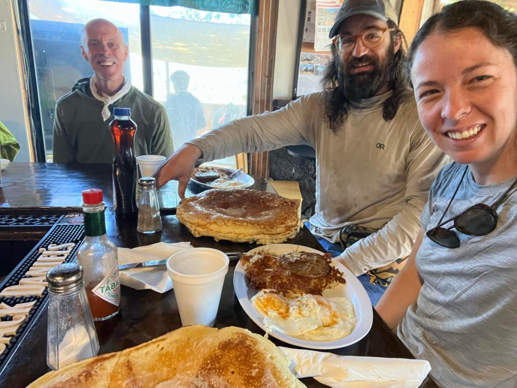 For breakfast we order the “all you can eat” pancake breakfast. When the pancake comes out it is larger than a dinner plate and 3 inches thick, and comes with a literal ice cream scoop of butter on top.  It is uncommon to finish one.  It is exceedingly rare to finish 2.  It is unheard of to finish 3.