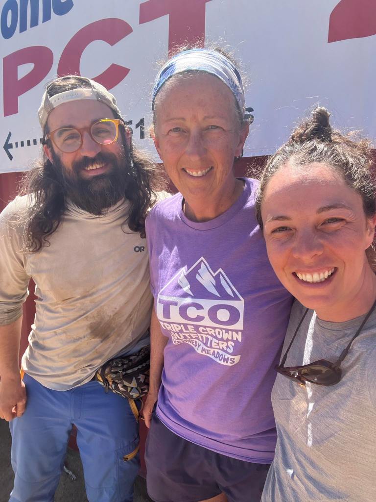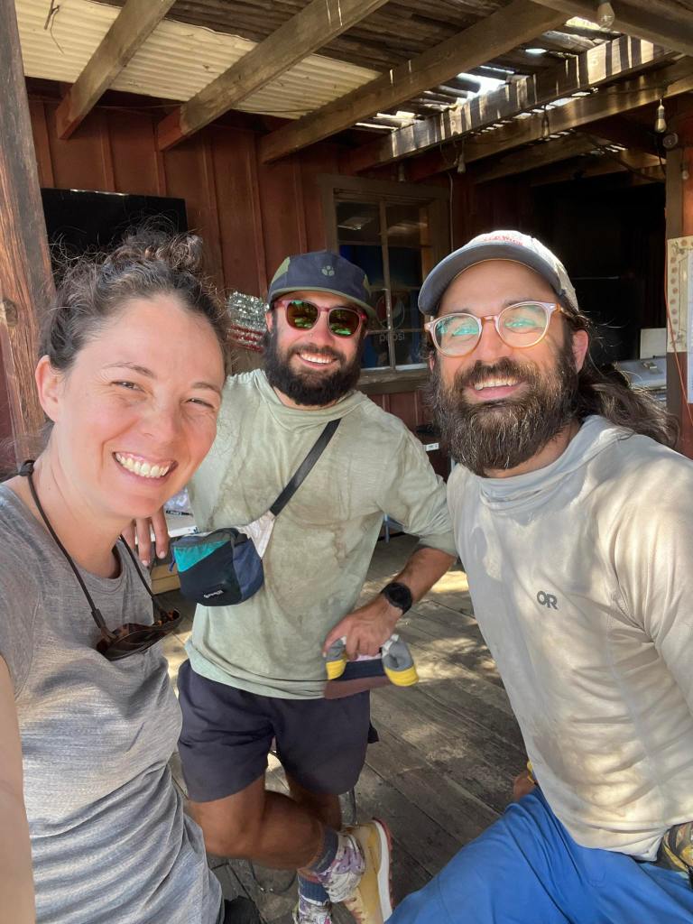 Next door to the cafe is a small outfitter run by “Yogi” a trail legend.  She has stocked a metal shipping container with food and gear perfectly catered to a thru hiker.    Yogi is a personal hero of mine. She is the first woman to have completed a double triple crown-  she hiked the Appalachian, Pacific Crest, and Continental Divide trails all twice.  When there was far less information floating around about the Pacific crest and Continental Divide trails Yogi wrote guidebooks on how to tackle the complicated logistics of these hikes.  The books were full of wisdom and encouragement and gave me the confidence I needed to first hike those trails in 2013 and 2016. In many ways I feel indebted to her for helping make this endeavor seem way less overwhelming.  We bought supplies from her store and took a picture with her before going a few miles down the road to the large deck of the general store to sip wine and socialize with other hikers.  My shirt is covered in ever growing dirt stains that never can wash out.