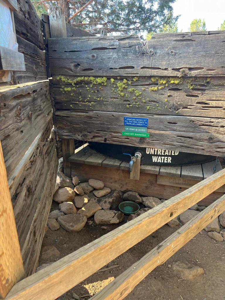 The radiant heat from the sun feels like a ray gun pointed at my chest. Our water bottles heat up and any sip we take is akin to drinking hot tea. We have to remain deliberate about our pace, as we are right on the edge of heat injury.At a road crossing we see a collection of gallon bottles sitting in the shade and we dump some of the water on our heads to desperately try to lower our core temperatures.