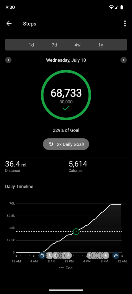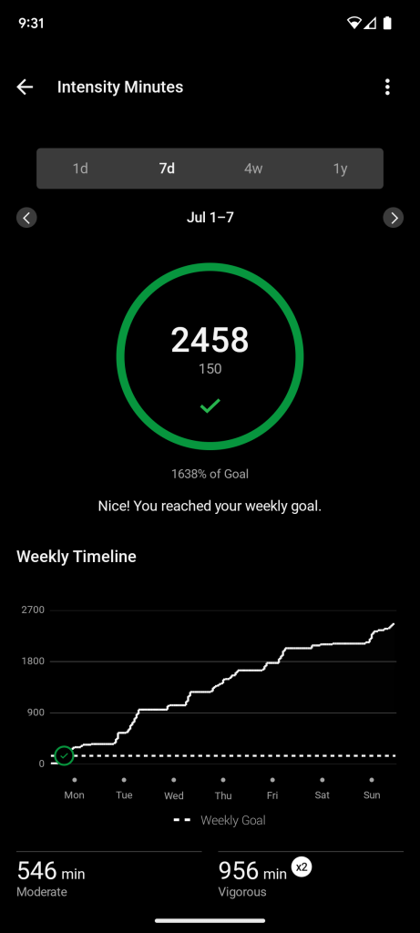 Above, the dotted line is my Garmin determined weekly exercise goal, hahaha.