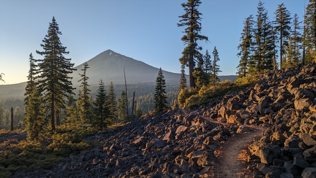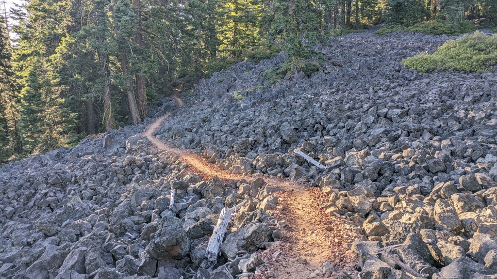 Volcanism is very apparent in this area. The trail passes over massive fields of volcanic rocks. At the end of the trail I get a tremendous view of Mt. McLaughlin, a 9,400 foot dormant volcano. It is the largest volcano between Shasta and the 3 Sisters.