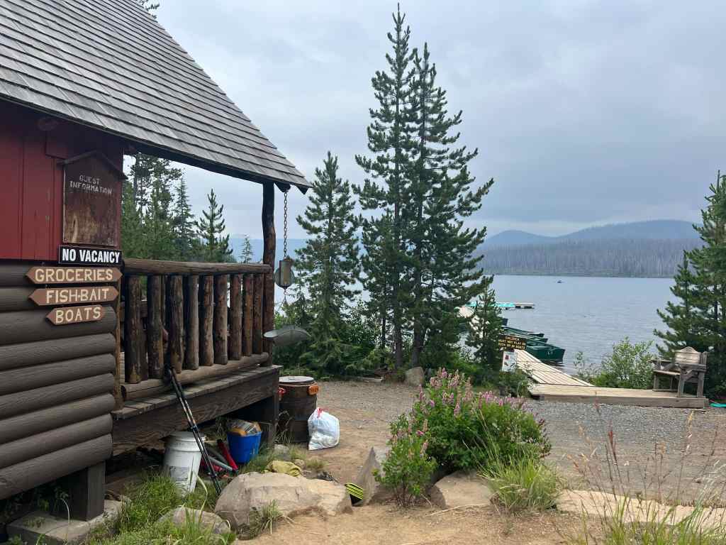 Soon, we pass into another burned area approaching Olallie lake. There is a tiny fishing lodge on the lake that we planned to resupply at, but learn as we approach that it is cash only.