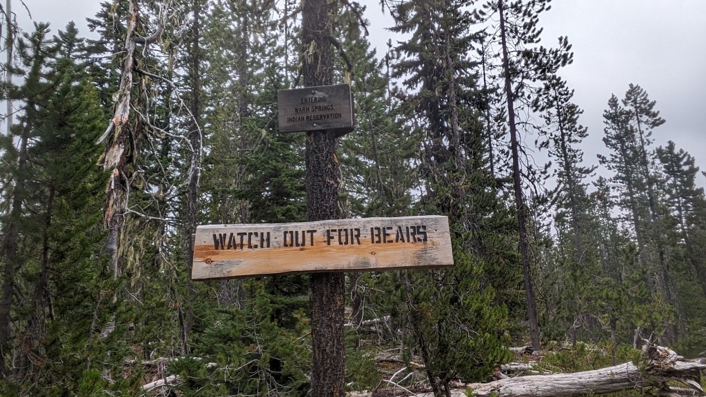 We camp under an ominous warning sign in the territory of the Warm Springs Reservation.